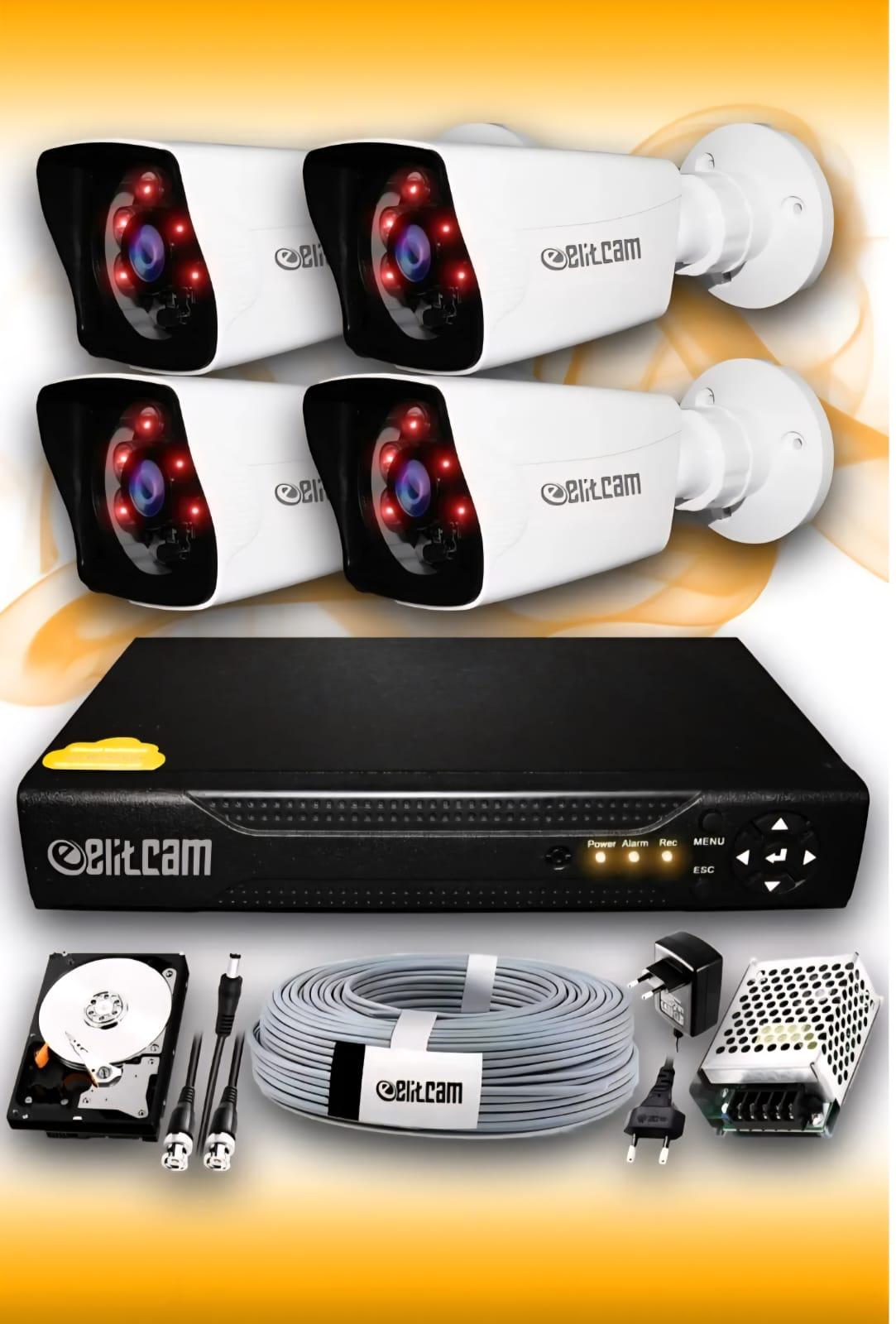 مجموعة كاميرات مراقبة Elitcam 4K Kare 4D رباعية الأبواب، قرص صلب سعة 250 جيجابايت، نظام كاميرات مراقبة عالي الدقة بالكامل، رؤية ليلية، المحتويات: