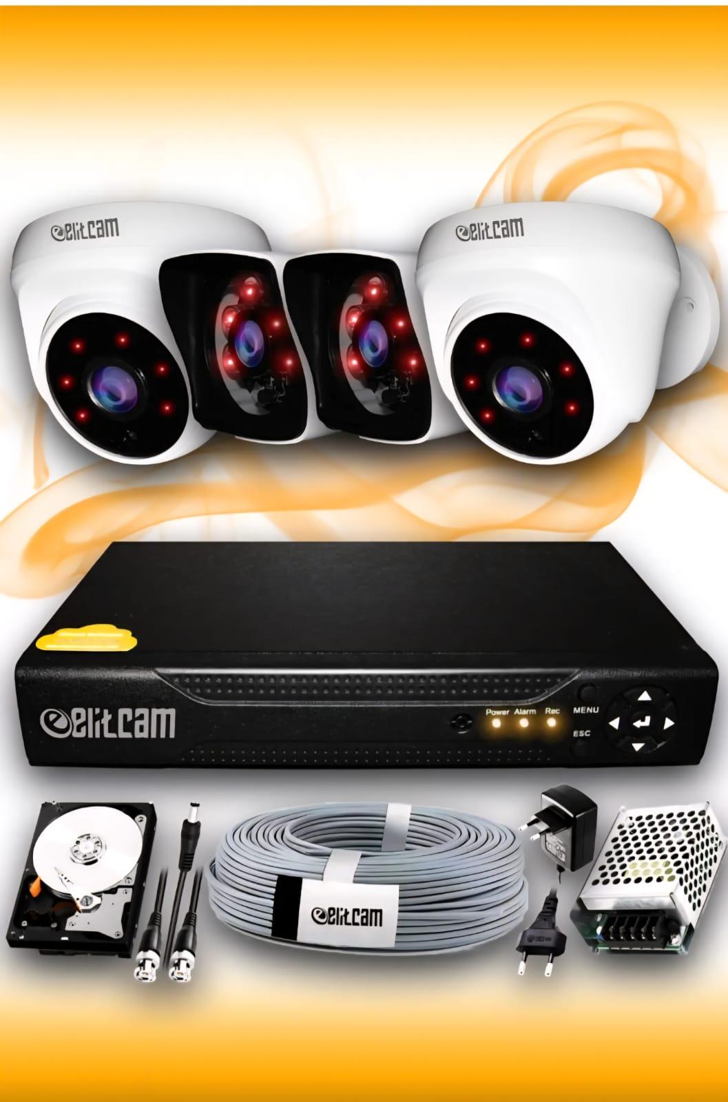 مجموعة كاميرات مراقبة Elitcam 4K Kare 4D رباعية الأبواب، قرص صلب سعة 250 جيجابايت، نظام كاميرات مراقبة عالي الدقة بالكامل، رؤية ليلية، المحتويات: