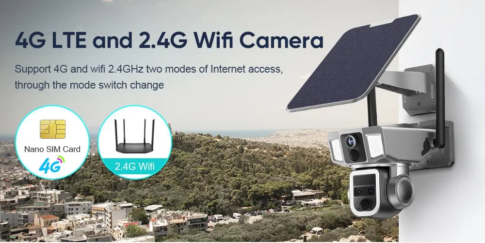 يمكنك توصيل الكاميرا بالانترنت عبر شبكة الواي فاي او وضع شريحة انترنت 4G فيها حسب رغبتك.